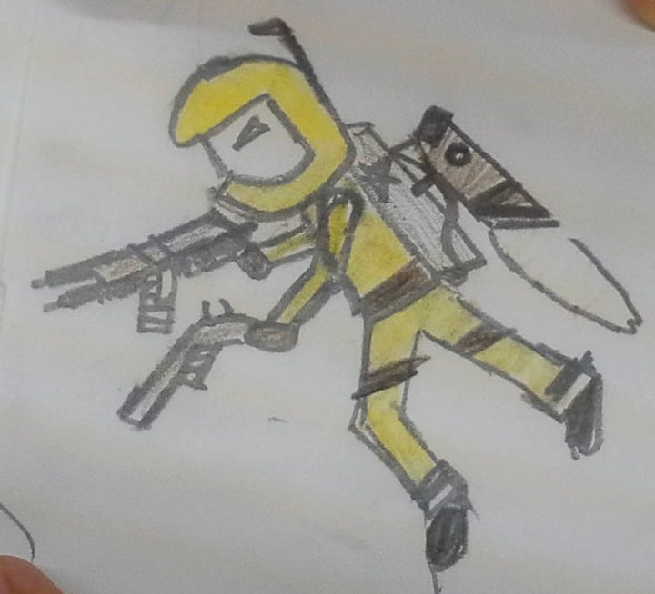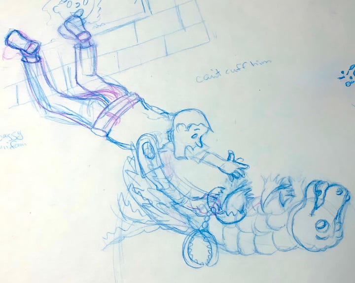 I was teaching a Kid’s summer drawing class, and our subject was action. I didn’t want them to use just reference pictures, but to draw the action they imagined, like a backward flip, a graceful leap, shooting hoops, or whatever.